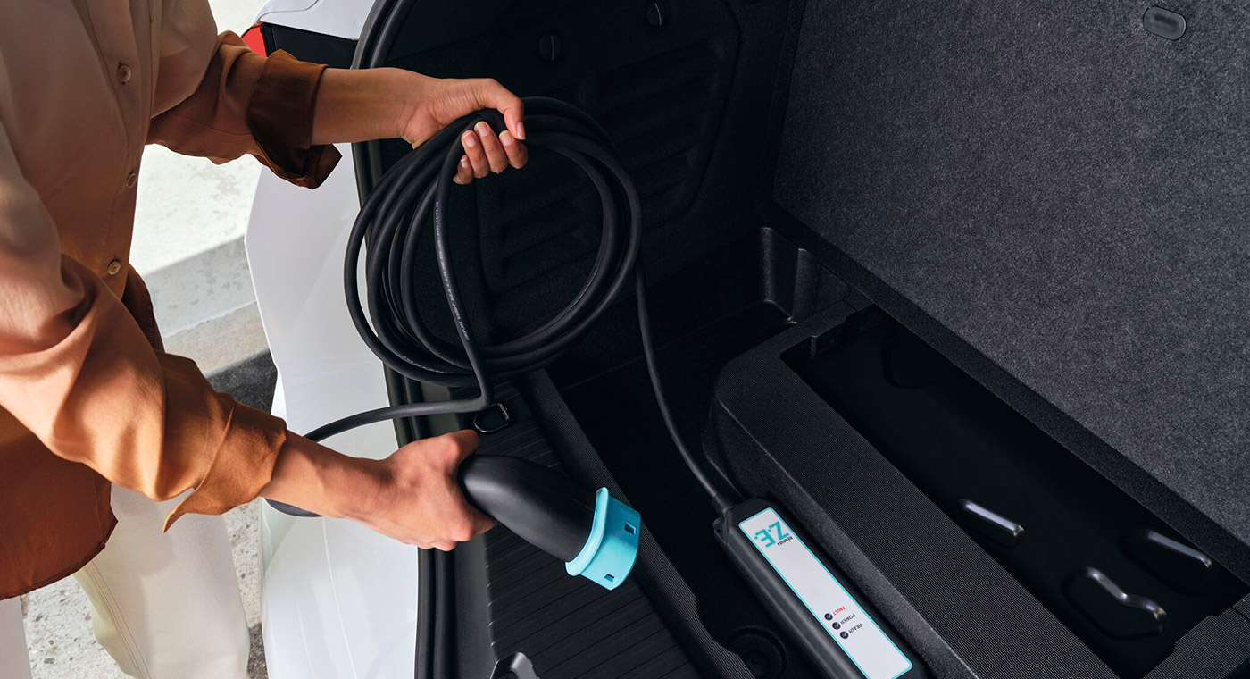 Pode carregar o motor elétrico, ligando-a à rede elétrica doméstica, ou durante a condução com a regeneração de energia durante as travagem e desacelerações