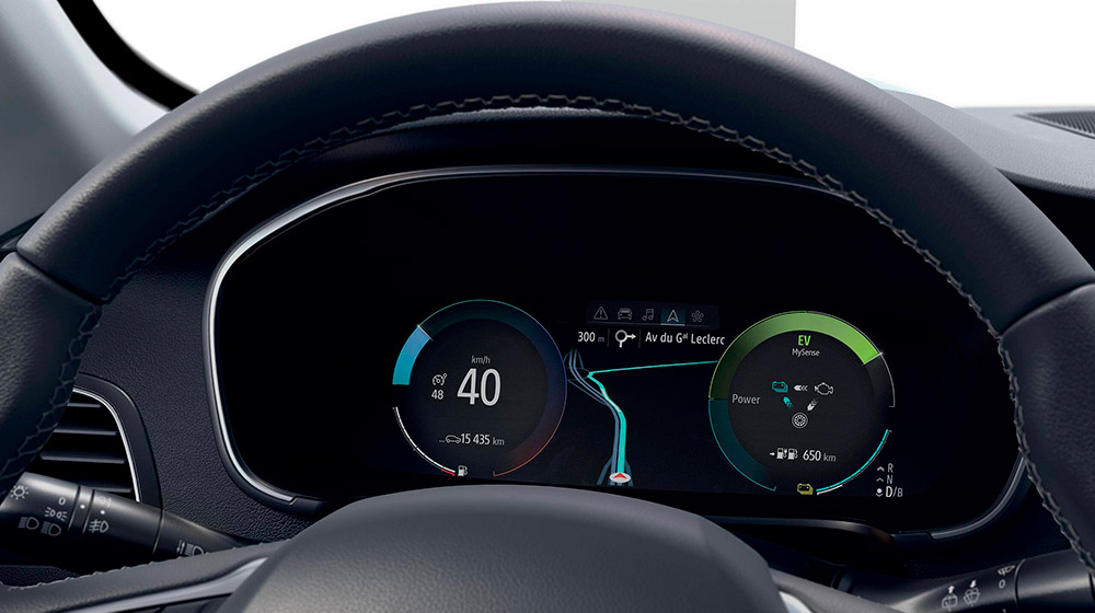 Os veículos E-TECH Híbrido Plug-in estão equipados com um ecrã 100% digital de 10,2’’ que apresenta todas as indicações específicas do híbrido, para além dos dados específicos de carga quando o veículo está a carregar