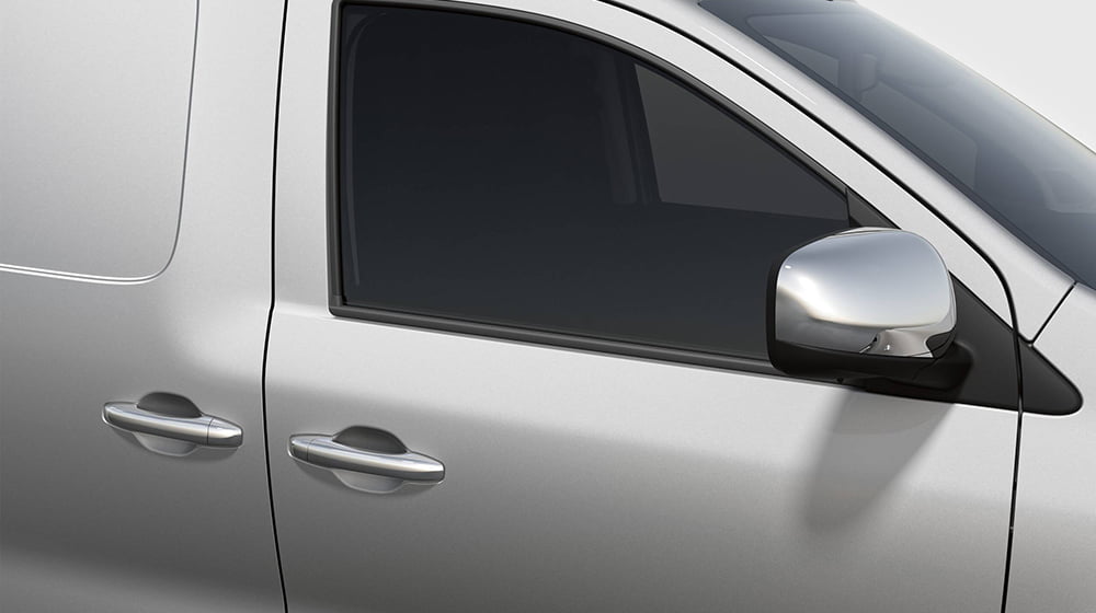 Para ainda mais conforto e segurança, amplie o seu campo de visão lateral direito com o espelho de grande ângulo “Wide View” situado na pala de sol do passageiro. Este permite-lhe ver o que é ocultado pela antepara em chapa.