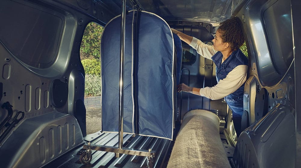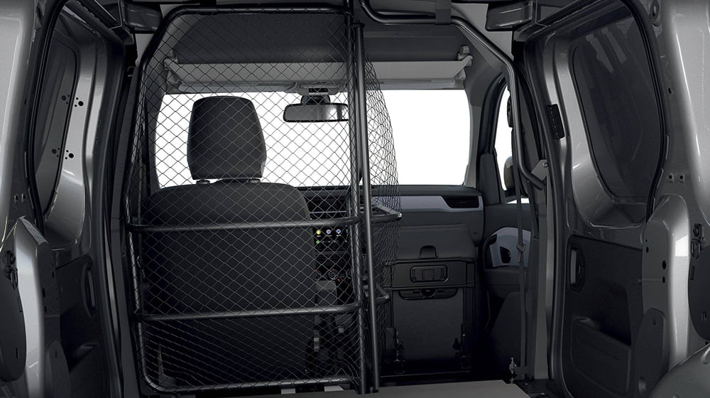 Com a antepara em rede basculante e o banco do passageiro rebatível, carregue até 3,7m3 de mercadorias e beneficie de um comprimento de carga de até 2,36m.