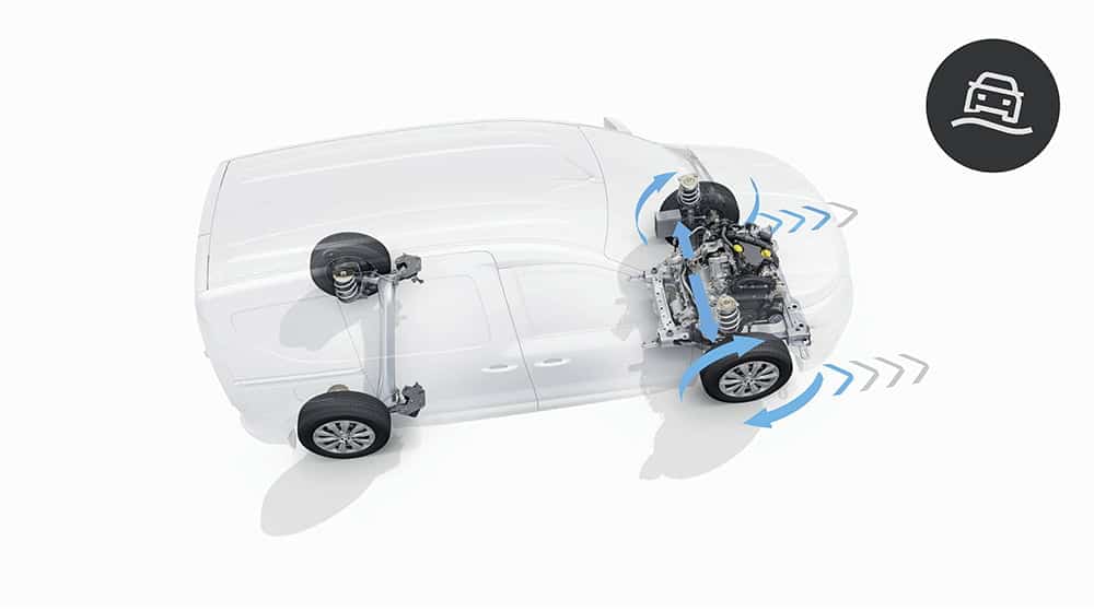 Necessita de atravessar um estaleiro enlameado ou um caminho difícil? Não se preocupe! Juntamente com os Pneus de 4 estações, o extended grip, uma funcionalidade melhorada do sistema ESP, reforça a motricidade aquando do arranque e a baixa velocidade, em pisos irregulares com pouca aderência (poeiras, areia dura, neve, pisos húmidos…). Ativo até aos 50km/h, pode ser ativado manualmente e permite-lhe prosseguir o seu caminho sem patinar nem ficar atolado.