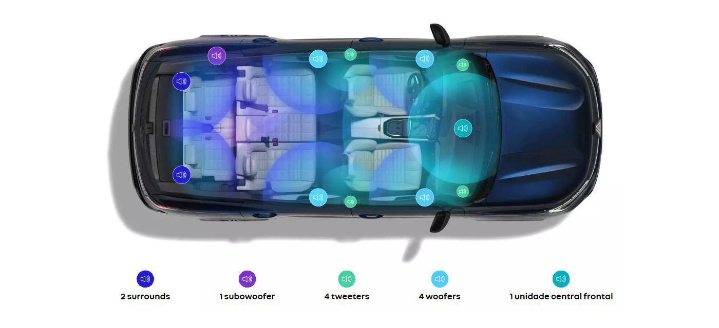 um ambiente de total controlo e harmonia com o sistema de som Harman Kardon que promete uma sensação de imersão nas suas músicas favoritas.